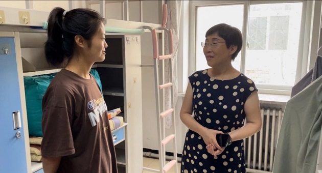 学院党委书记张颖以及新生辅导员姜智颖前往新生宿舍,关心慰问新生环境适应情况,鼓励大家以良好的精神面貌迎接全新的研究生生活。