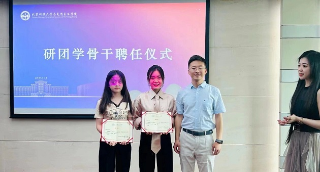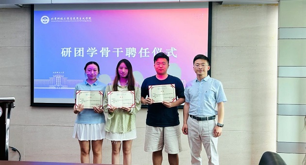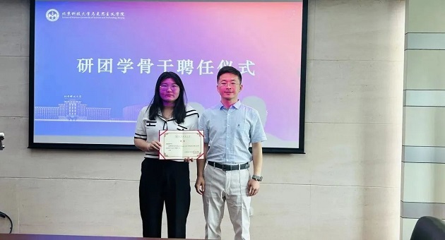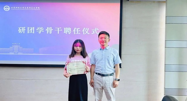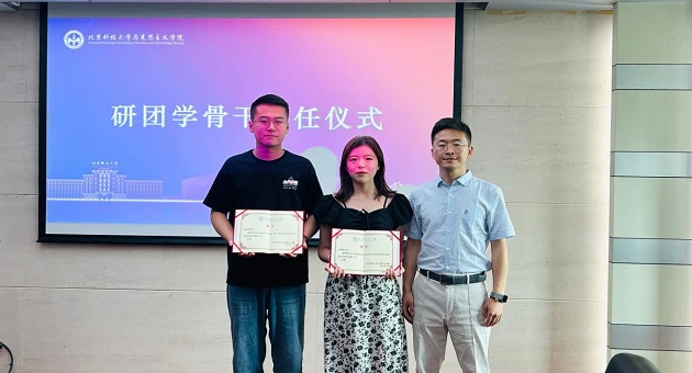 聘任仪式上,姜卓君宣读本届研团学骨干聘任名单,李勇威书记依次为各研团学骨干颁发聘书,同时对全体学生干部的付出给予了充分肯定。
